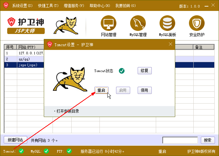 安装了护卫神·JSP大师之后,系统就具备了开设JSP网站的能力。