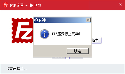3、FTP服务停止完毕: