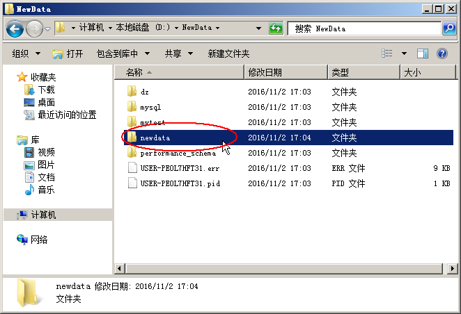 5、迁移完成后,尝试新建一个数据库,命名为“newdata”,如图,创建成功: