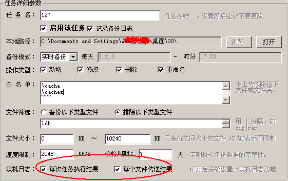 4、任务参数中,联机日志设置(每个任务可以进行不同的设置)