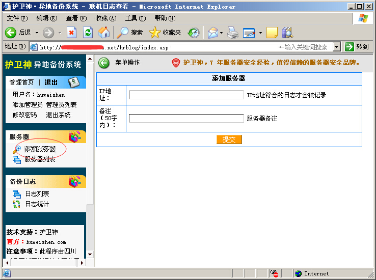 3、默认管理员名:huweishen,默认密码:huweishen.com,请及时修改。