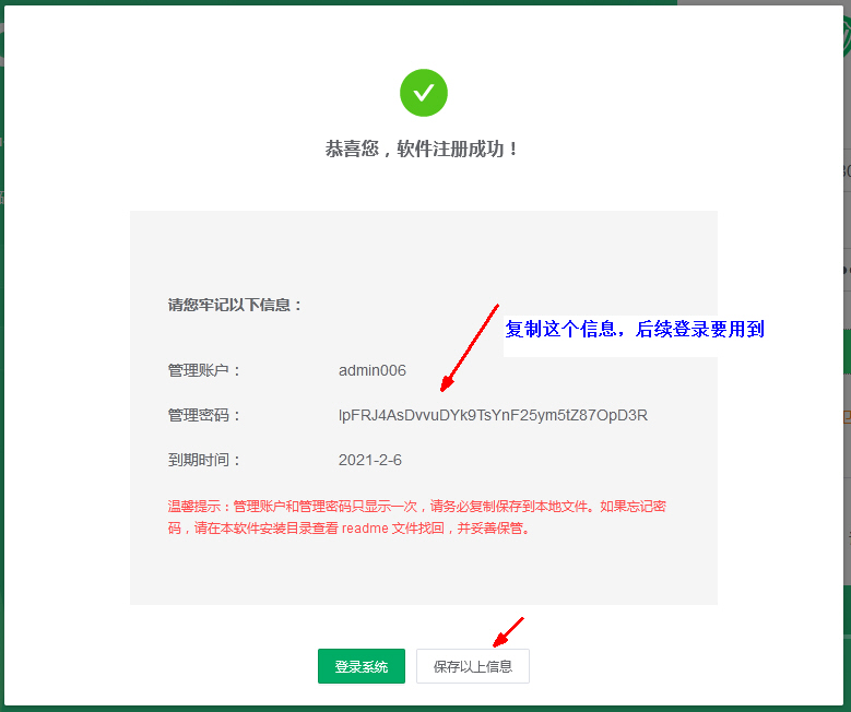 点击上图的【保存以上信息】,会将注册信息保存到本地,如下图: